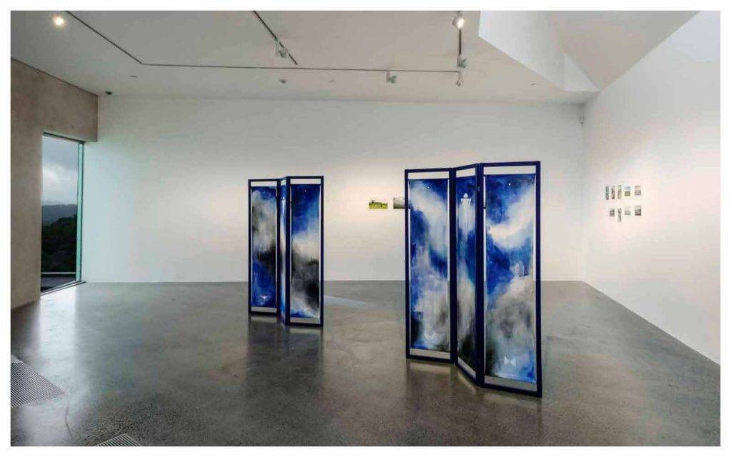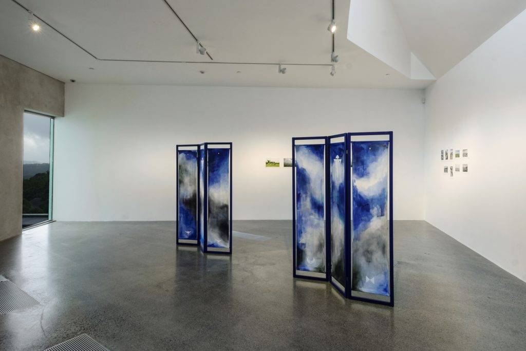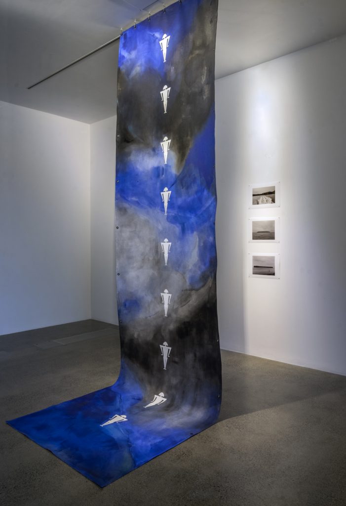 A prolific maker, Arbuckle’s practice is a process-driven exploration of place, with landscapes conceptualised through the very act of their making. Favouring process over outcome, Arbuckle employs elements of traditional Japanese shibori dyeing techniques — wrapping, twisting, folding, and draping fabric over found surfaces and structures — to create abstract compositions. The resulting paintings use depth and movement to trace and reveal abstract memories, imprinting the experience of place into the artwork.